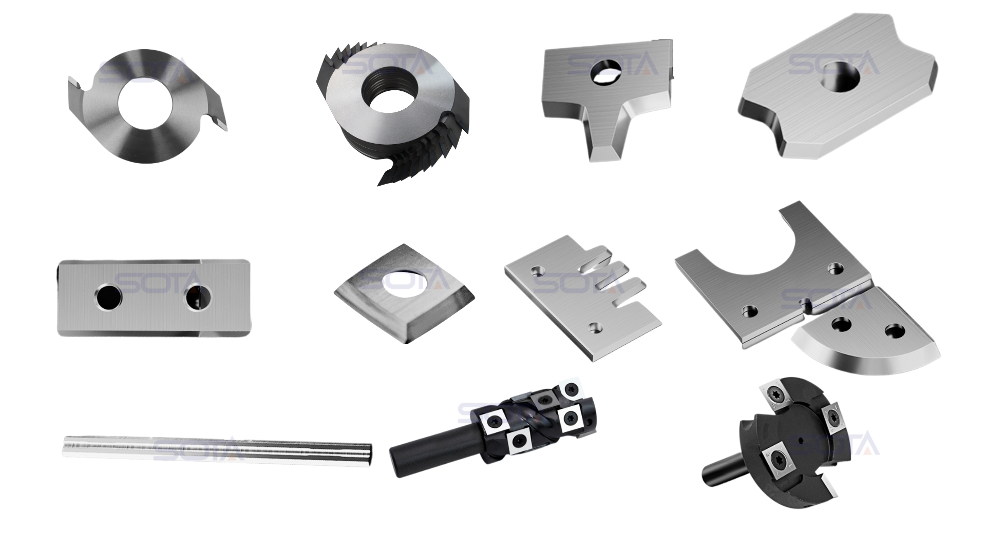 SOTA’s block planer blades, edge banding scrapers, and spiral cutterheads. Designed for processing solid wood, MDF, plywood, and particleboard.